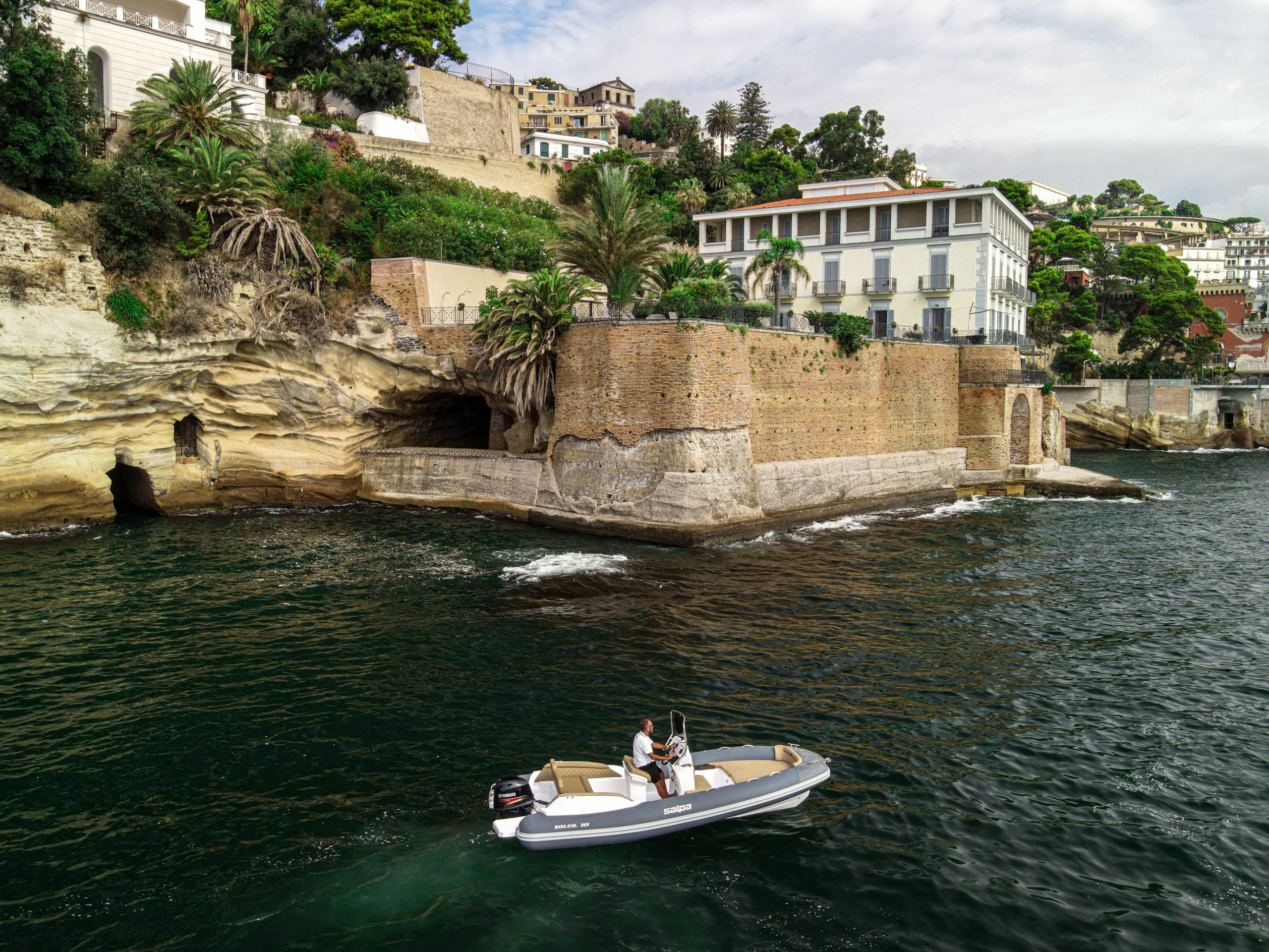 Se trata de una semirrígida que sorprende por su casco, dotado de un pronunciado escalón transversal para limitar el rozamiento, permitir montaje de potencias menores y reducir los consumos. De hecho permite su uso con eficiencia, montando un fueraborda de mínimo 40 CV, que se convertirá en muy deportivo si utilizamos los 115 CV que admite como potencia máxima.